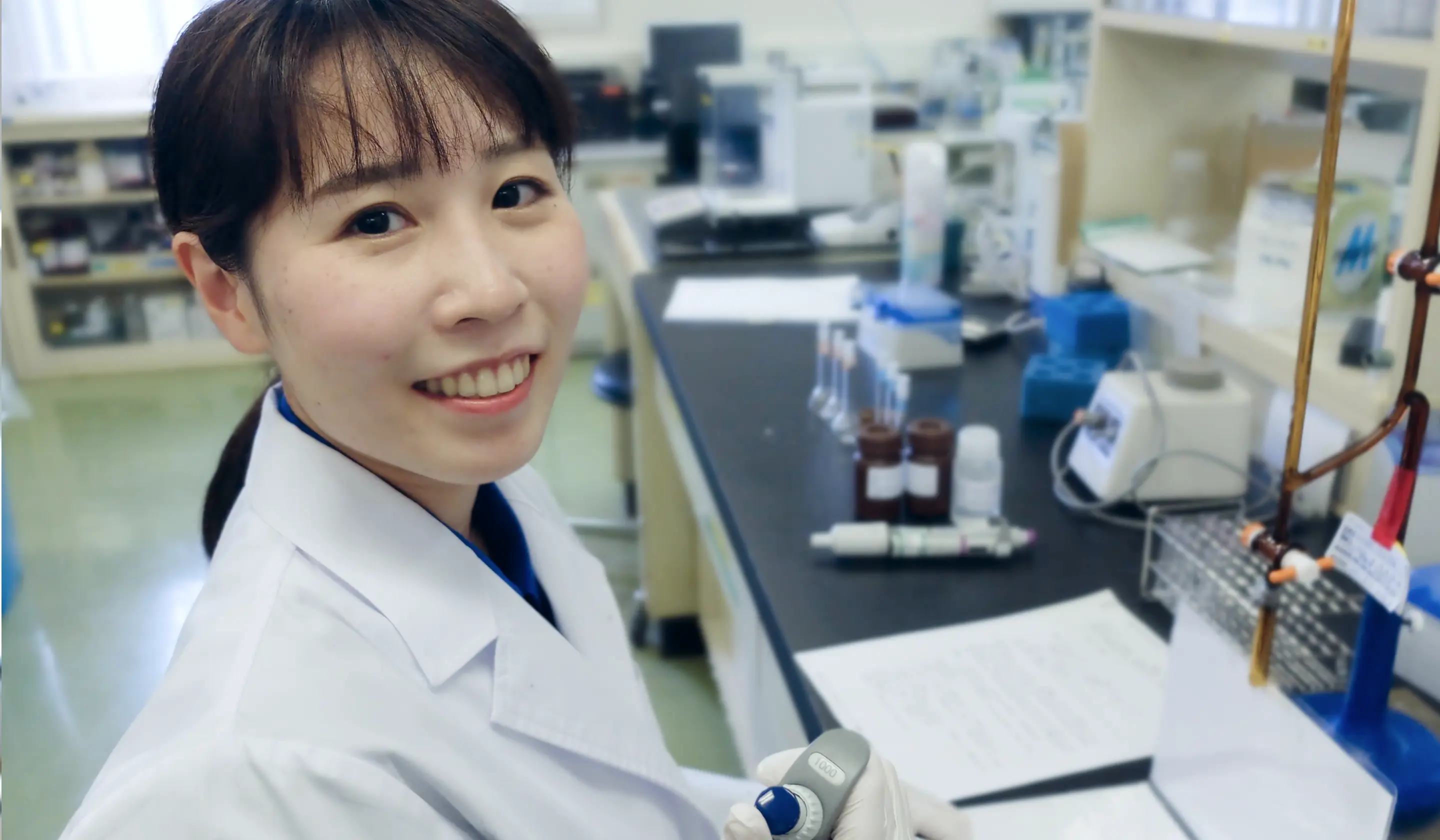 自社製品のことや日本薬局方などの医薬品を作るための法令について知識を深めていきたいです。そのためには、今担当している試験だけでなく、積極的に他の試験方法を教わり、機器や日本薬局方についてのセミナーに参加して、日々経験を積み学んでいきたいです。また当社では海外からの輸入製品も取り扱っており、今後は海外企業との連携も必要となってくるため英語も勉強中です。
